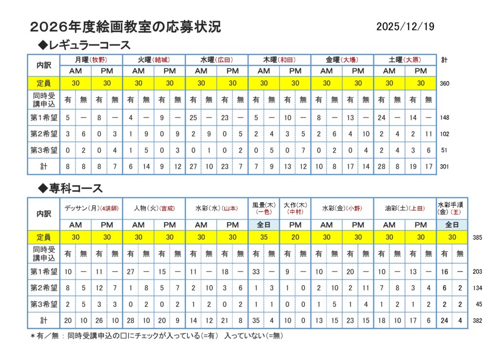 12月17日現在の最新応募状況です。→PDFファイルはこちら